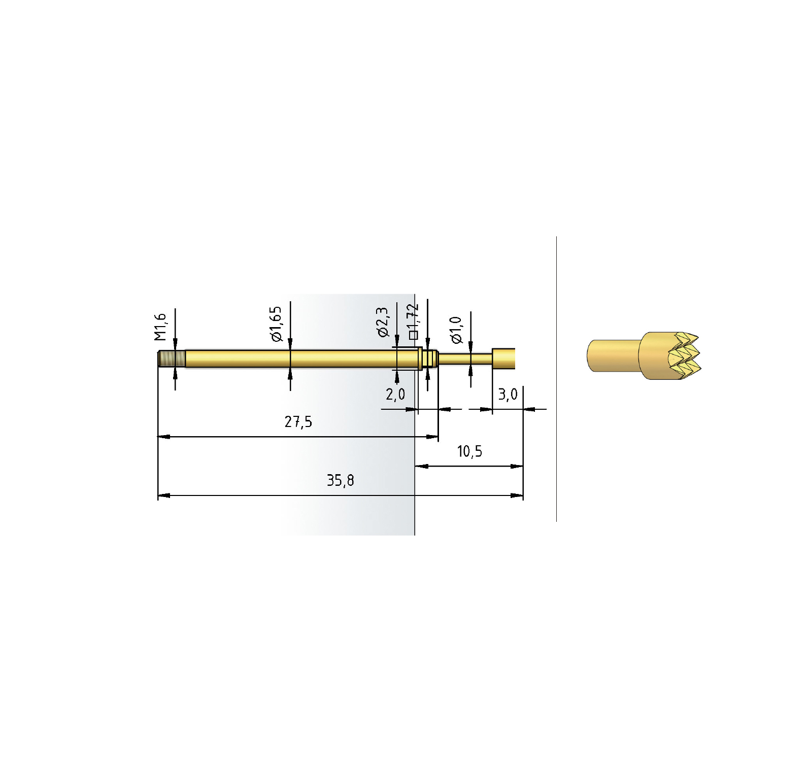Igła testowa 1021/G-C-1.5N-AU-2.0, raster 2,54 (100 mil)